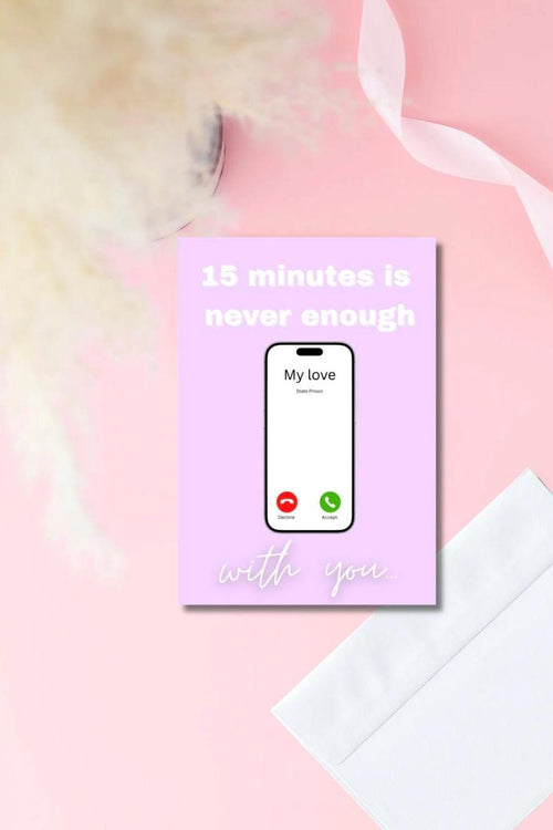 15 Minutes Is Never Enough With You Card | Prison Wife Girlfriend Card | Incoming State Prison Call Design | Long Distance Love Card